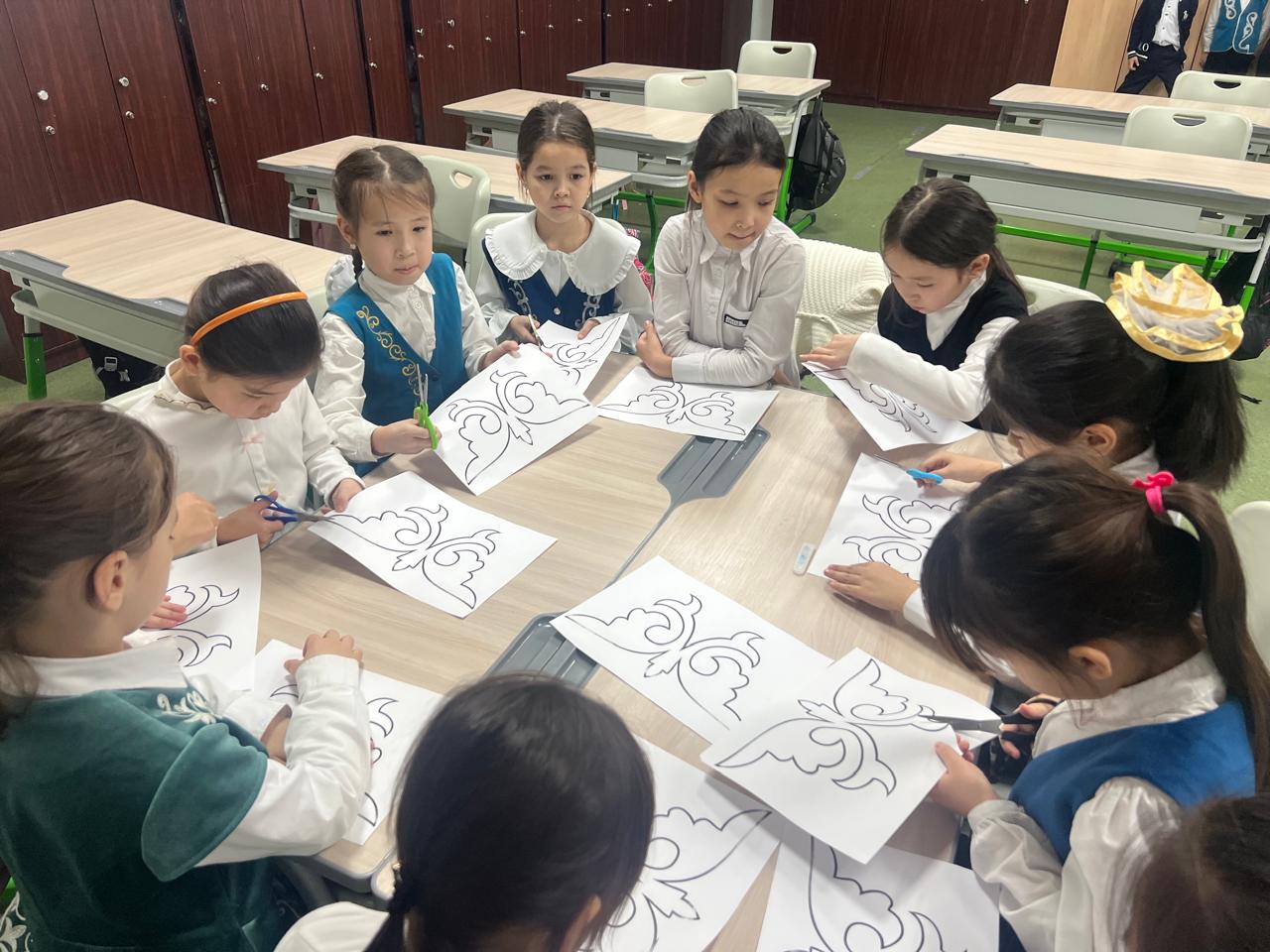 В ходе проекта девочки также глубже знакомятся с национальными ценностями и занимаются творчеством. Они изучают названия казахских орнаментов, вырезают узоры из бумаги, раскрашивают их в красивые цвета и художественно оформляют. Эти занятия формируют эстетический вкус учащихся и усиливают интерес к культурному наследию нашего народа.